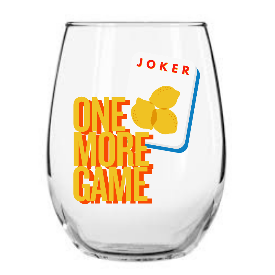 Get your Mahj on with these cheeky stemless wine glasses! The One More Game stemless wine glasses are perfect for your Bird Bam Cheers and for toasting when you get mahjong.
