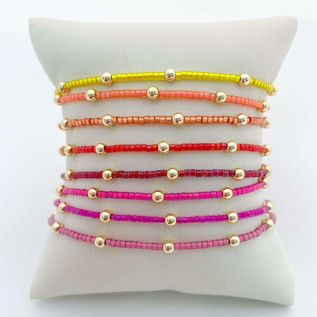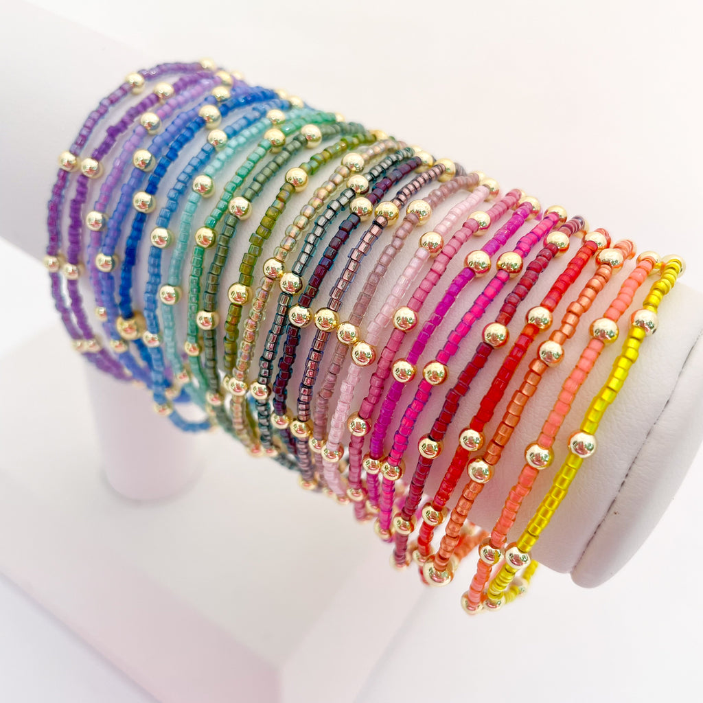 Tiny but mighty, these shimmery Mystic Mini bracelets are your stack's new bestie! Available in a rainbow of dual-tone colors, these skinny minis are fun to stack together or with your gold bead bracelets. They also make the perfect gameday stack or even Best Friend bracelets!